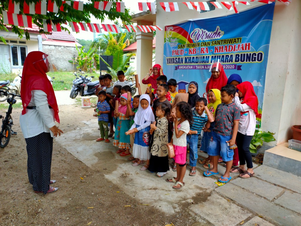 Meskipun dalam Kondisi Covid-19, LPIT Yayasan Khadijah Muara Bungo, tidak mengabaikan protokol kesehatan. Yayasan Khadijah Muara Bungo, sangat mendukung sekali program pemerintah dalam menanggulangi Covid-19. Protol Kesehatan yang dilakukan adalah memberikan Hand Sanitizer kepada anak-anak dalam memulai segala kegiatan, meskipun sudah dibilangkan kepada wali murid untuk mengunakan masker, tapi diabaikan. Tapi Insya Allah Aman, karena kami selalu memonitoring kegiatan orang tua wali.