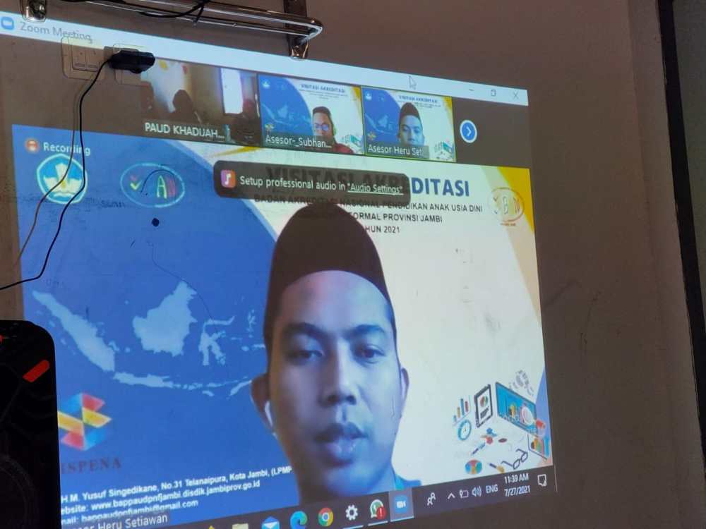 Pada hari Selasa, 27 Juli 2021. Tepat pukul 7.30 Visitasi Akreditasi dilaksanakan. Paud Khadijah Muara Bungo yang Asesor pengampu tugas tersebut dari BAN PAUD dan PNF adalah Tuan Subhan Arif, S.Pd., dan Dr. Heru Setiawan, S.Pd.I., M.Pd.I.